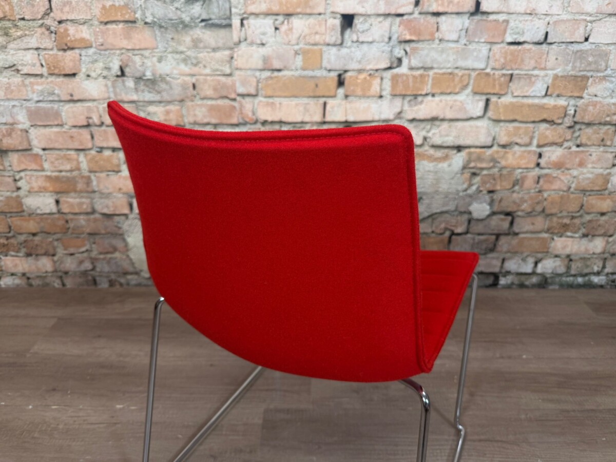 De Arper Catifa 46 Rood is een prachtige stoel die door zijn felle kleur direct opvalt in elke kamer. Dit bekende ontwerp van de studio Lievore Altherr Molina is geliefd omdat de stoel een heel herkenbare vorm heeft en erg lekker zit. In tegenstelling tot andere versies is deze Arper Catifa 46 Rood helemaal uitgevoerd in één kleur rood, wat zorgt voor een krachtige en moderne uitstraling aan je tafel.
