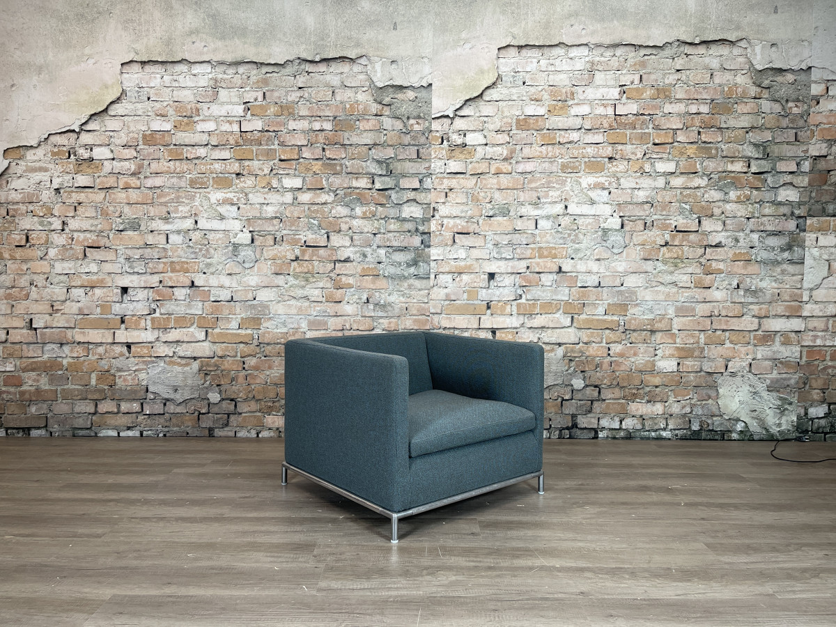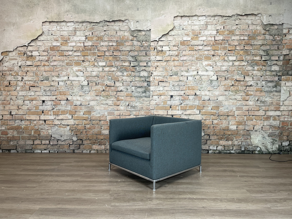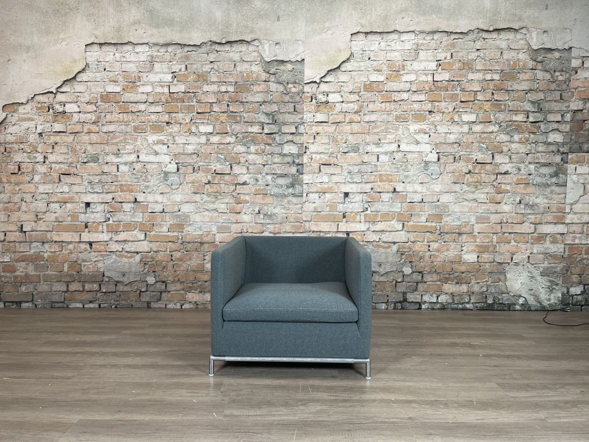 De B&B Italia George fauteuil grijs is een ontwerp van Antonio Citterio voor B&B Italia. De bank kenmerkt zich door strakke lijnen, royale zitkussens en een uitgebalanceerde verhouding tussen comfort en architectonische vormgeving.