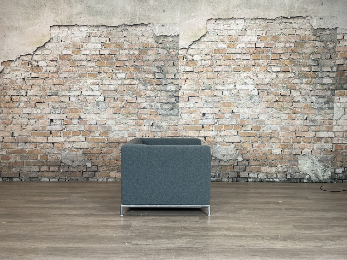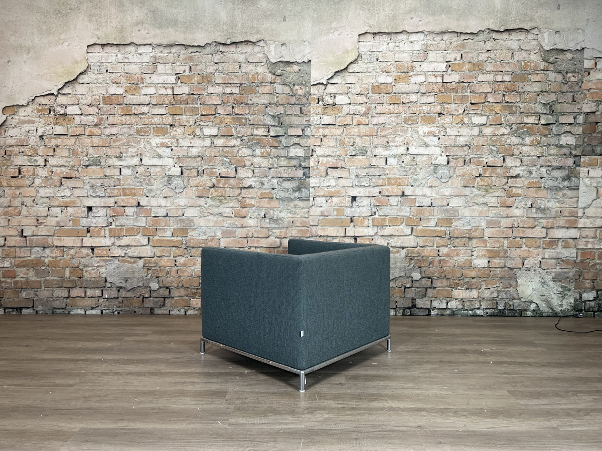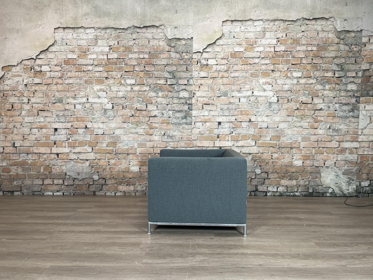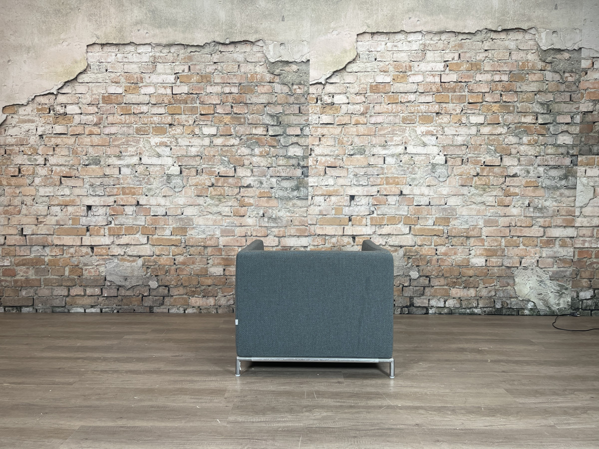 De B&B Italia George fauteuil grijs is een ontwerp van Antonio Citterio voor B&B Italia. De bank kenmerkt zich door strakke lijnen, royale zitkussens en een uitgebalanceerde verhouding tussen comfort en architectonische vormgeving.