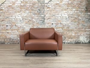 De Tulip Armchair bruin is een ontwerp van Jeffrey Bernett voor het merk B&B Italia. Deze draaibare fauteuil met een metalen poot en leren bekleding heeft een strak en modern uiterlijk en biedt ultiem comfort aan.