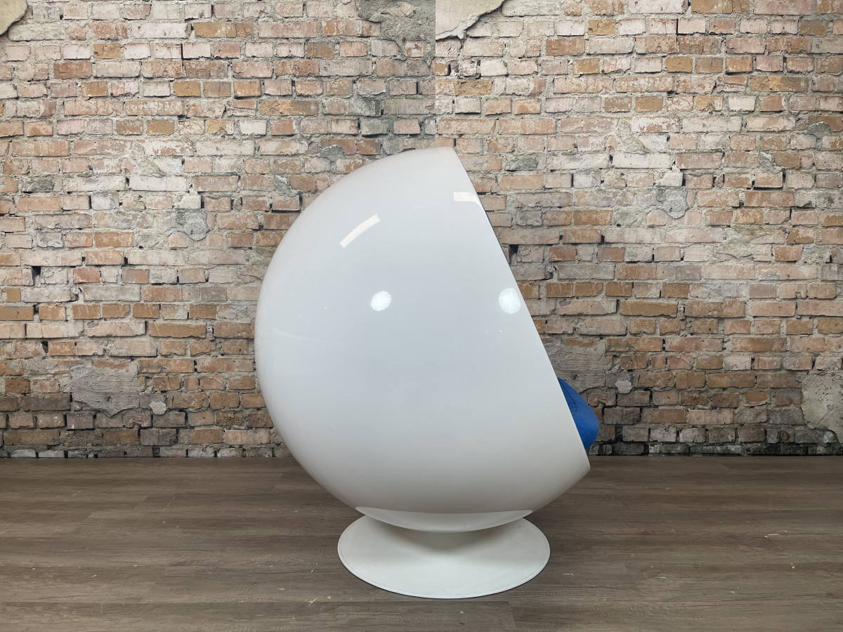 De Ball Chair felblauw, ontworpen door Eero Aarnio Originals in 1963, is een iconische coconstoel die comfort en design combineert. Met zijn ronde vorm en omsluitende rugleuning biedt hij privacy en een uniek ziteffect. De stoel is gemaakt van glasvezel met een zachte stoffen of leren bekleding en past perfect in moderne interieurs of als opvallend designelement.