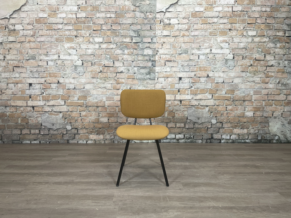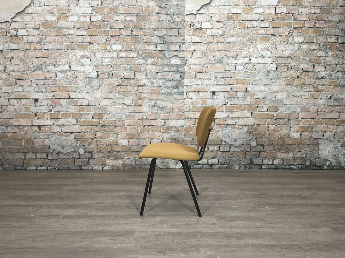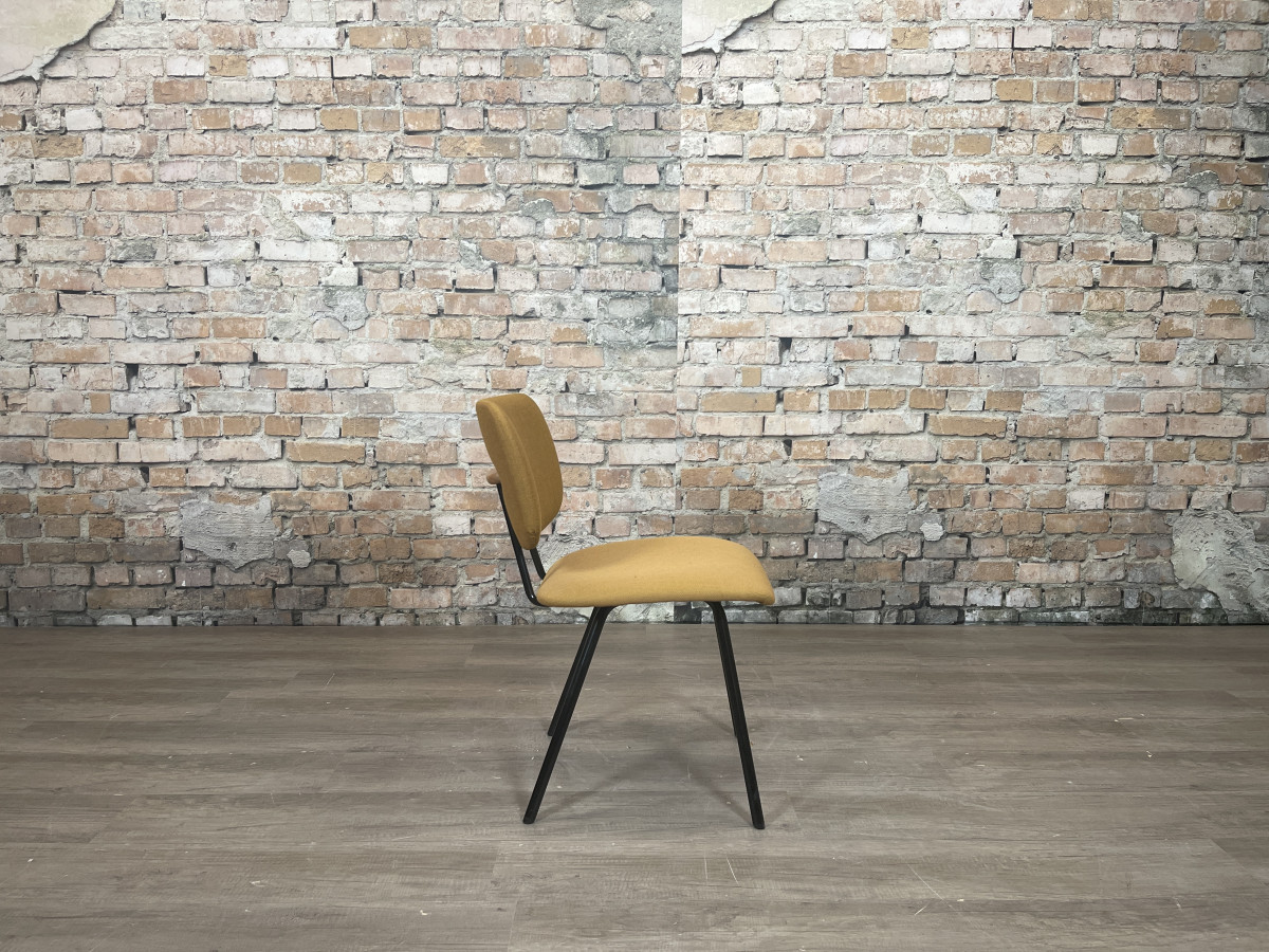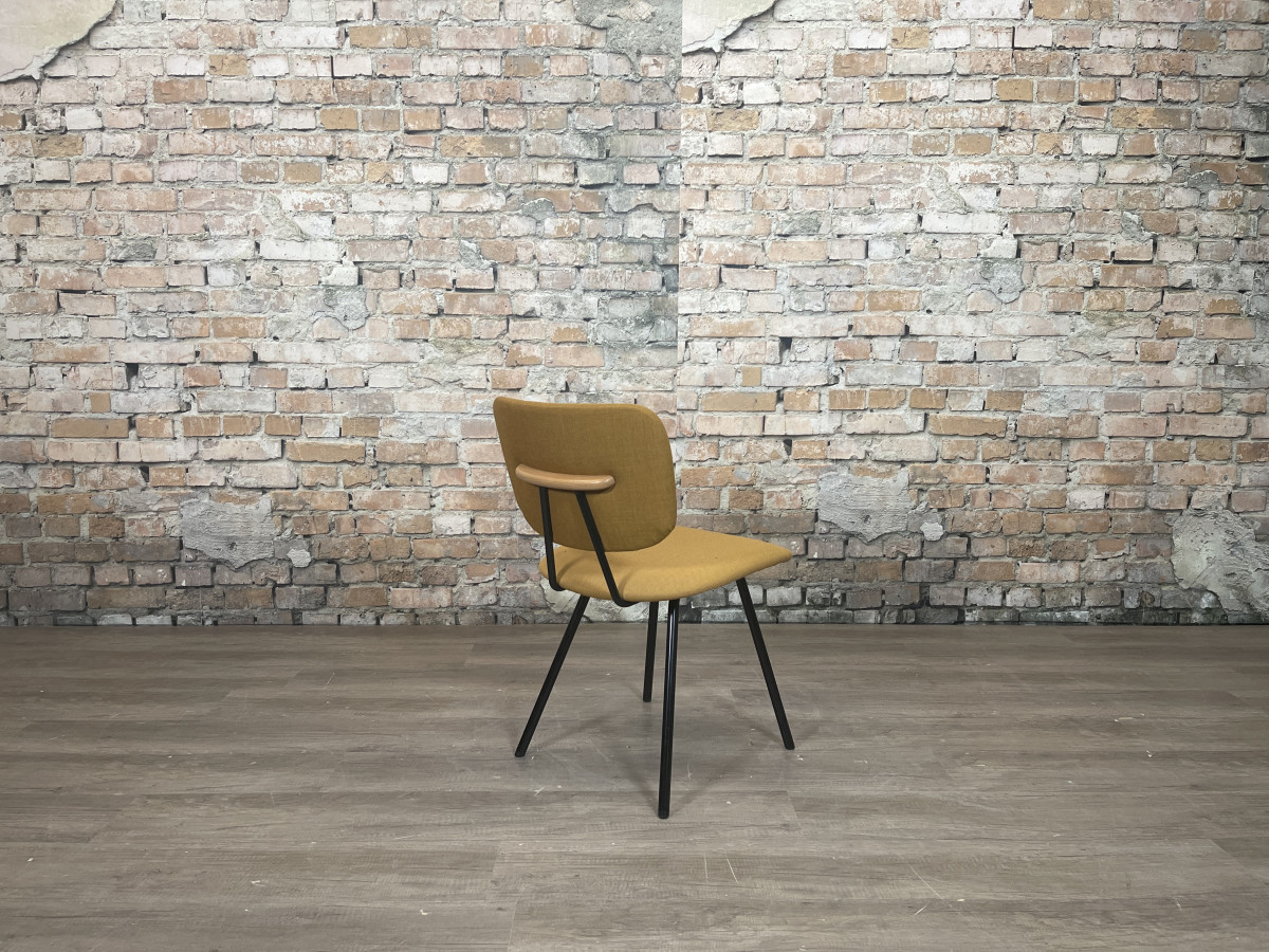 De S084 geel is een ontwerp van het merk Exsta. De S084 is een eetkamer en vergaderstoel die zich kenmerkt door eenvoud en open structuur. Het gebogen stalen frame en zachte houten ‘horizon’ accent dragen de gebolde en afgeronde rug en zitting, bijna alsof ze zweven in de ruimte.