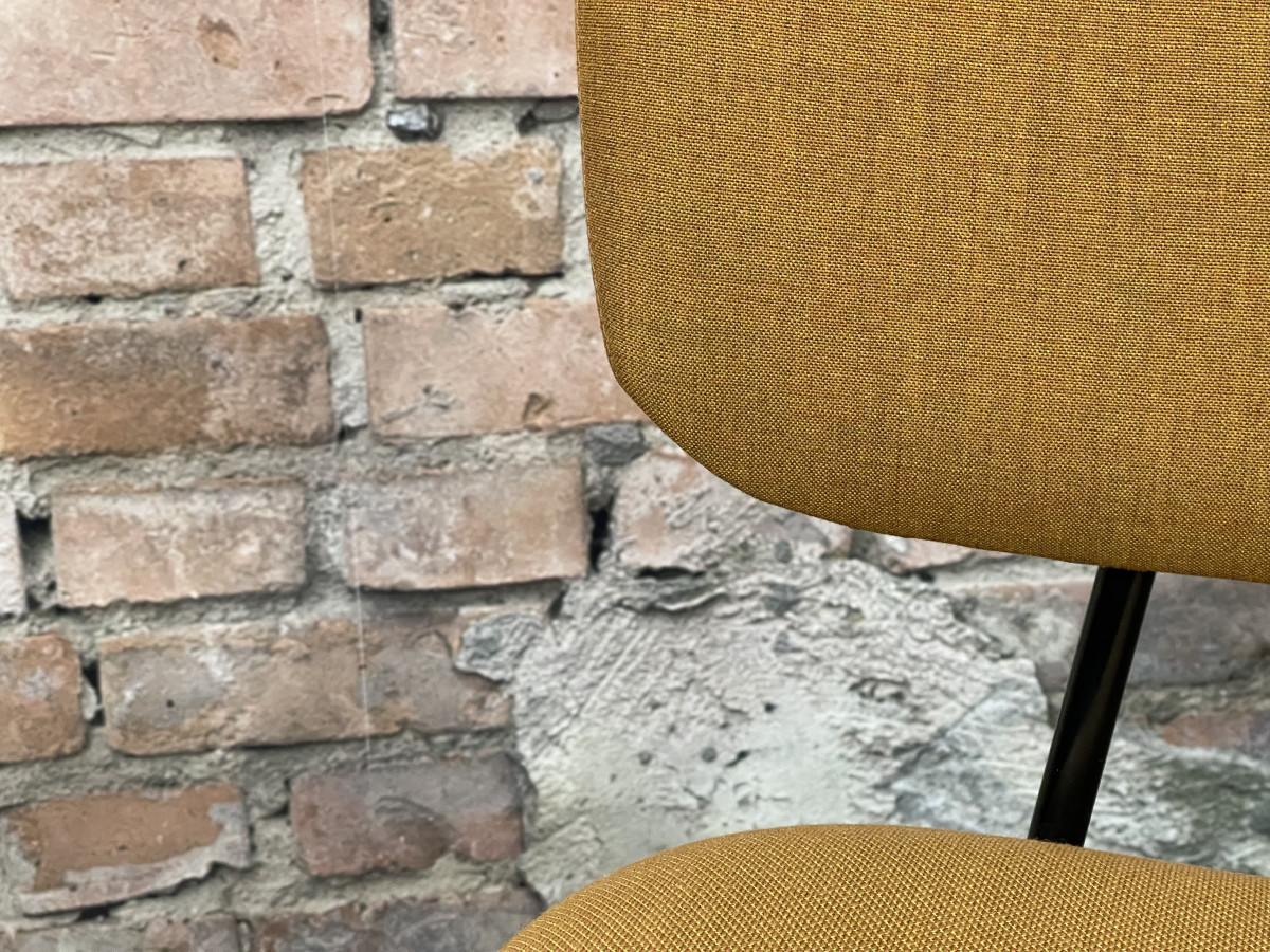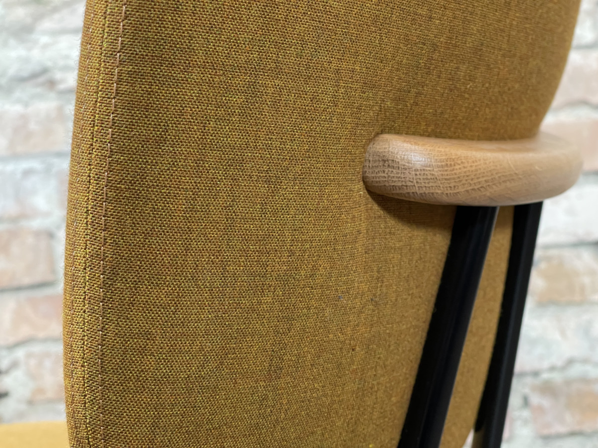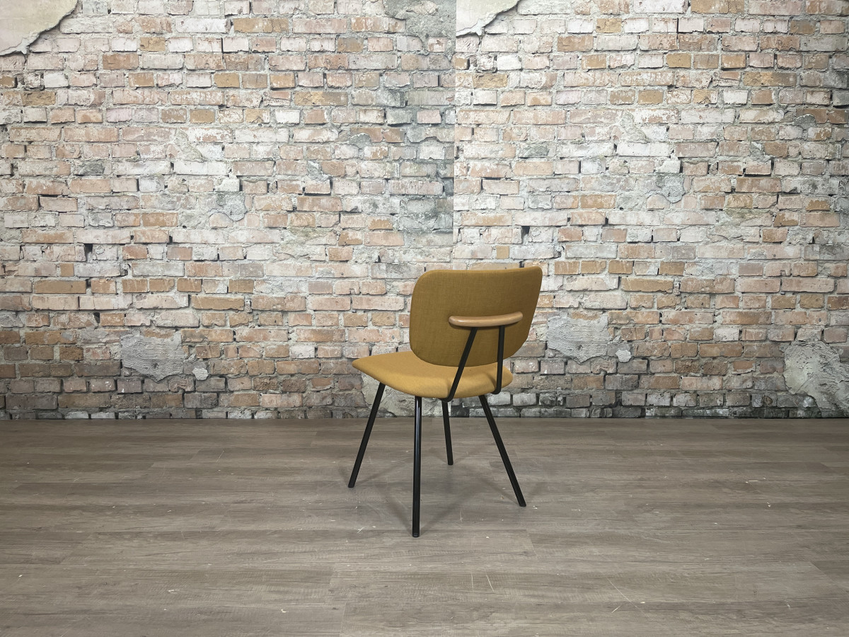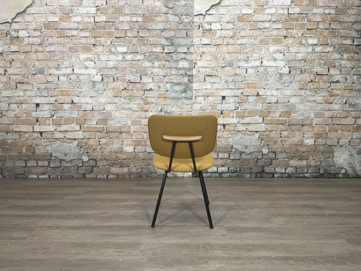 De S084 geel is een ontwerp van het merk Exsta. De S084 is een eetkamer en vergaderstoel die zich kenmerkt door eenvoud en open structuur. Het gebogen stalen frame en zachte houten ‘horizon’ accent dragen de gebolde en afgeronde rug en zitting, bijna alsof ze zweven in de ruimte.