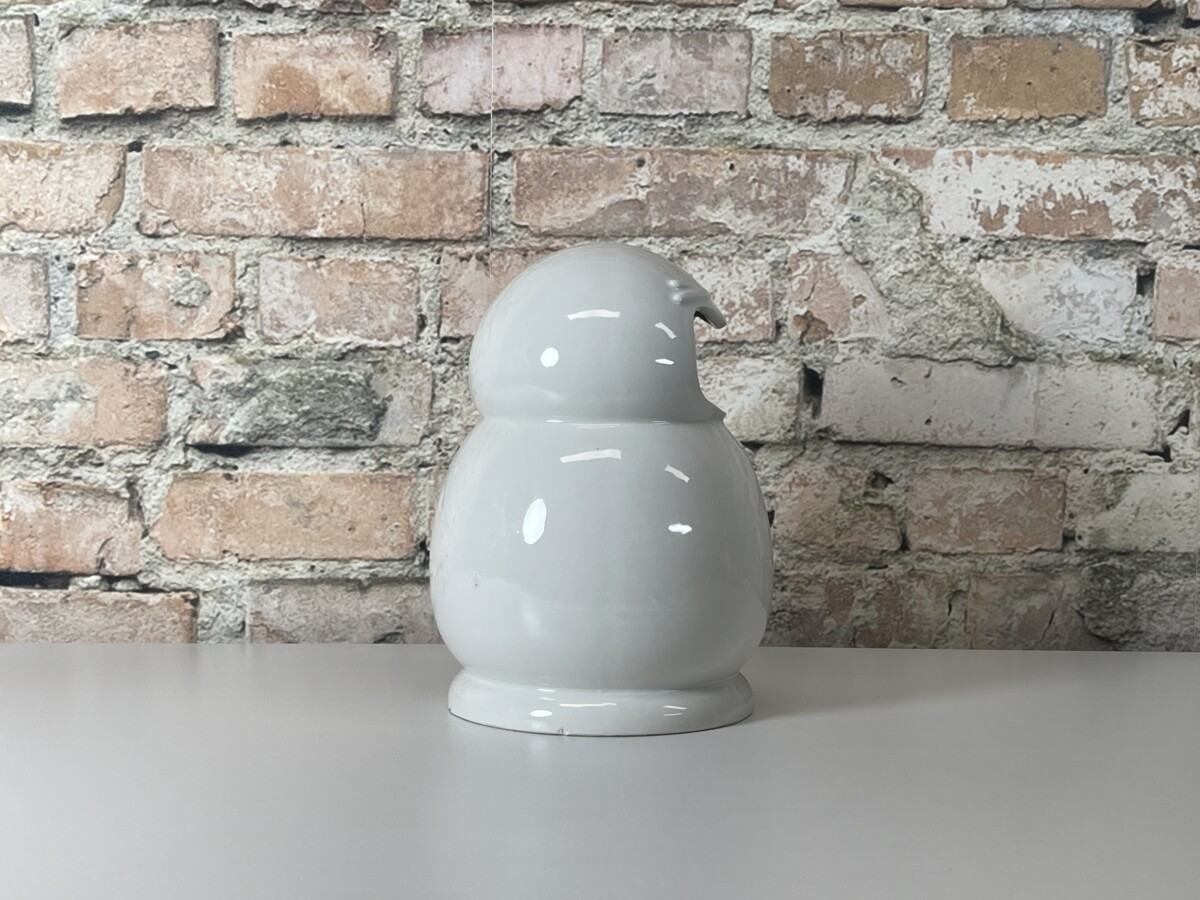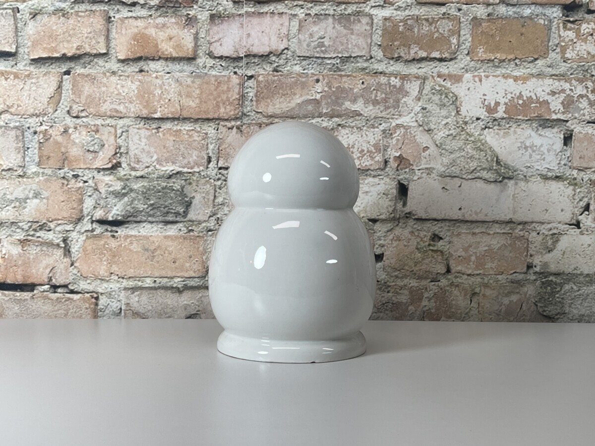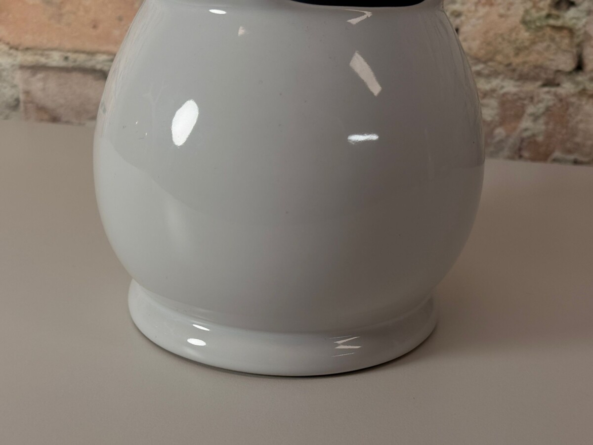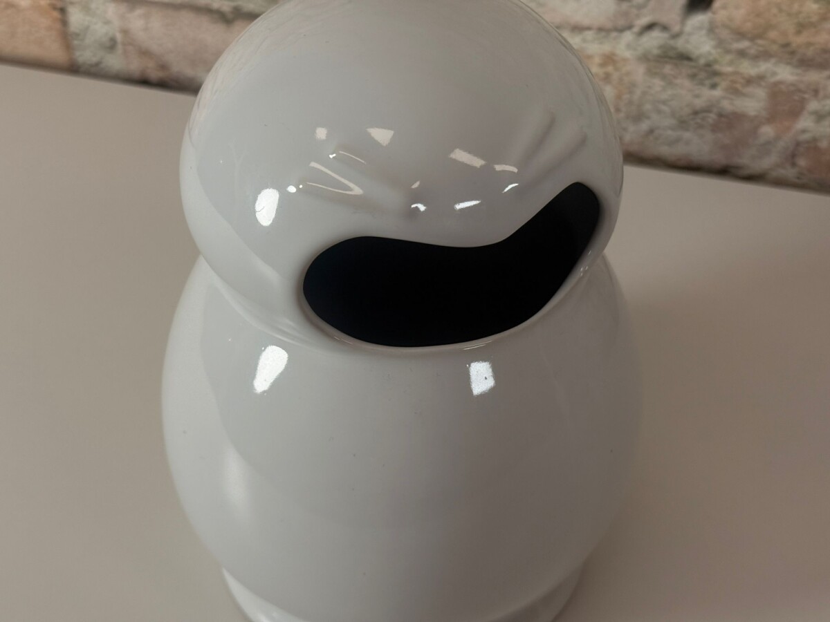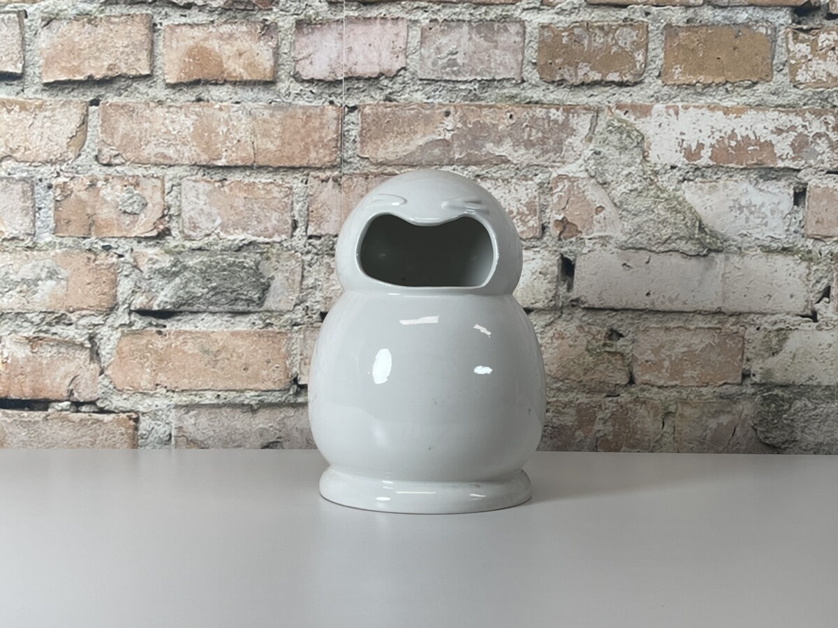 Je herkent direct de kenmerkende, gebeeldhouwde uitdrukking; een unieke mix van verbazing en een ‘schreeuw’, prachtig gevangen in hoogwaardig wit geglazuurd keramiek. De Frank Willems Aaah Large is bij uitstek geschikt als een volwaardige, eigenzinnige vaas. De grote opening bovenin biedt ruimte voor een prachtig boeket of een paar opvallende takken. Dit exemplaar verkeert in een nette staat, met enkel een paar kleine gebruikssporen in het keramiek die passen bij de prijs van het object. Een absolute must-have voor liefhebbers van modern design dat een glimlach op je gezicht tovert.