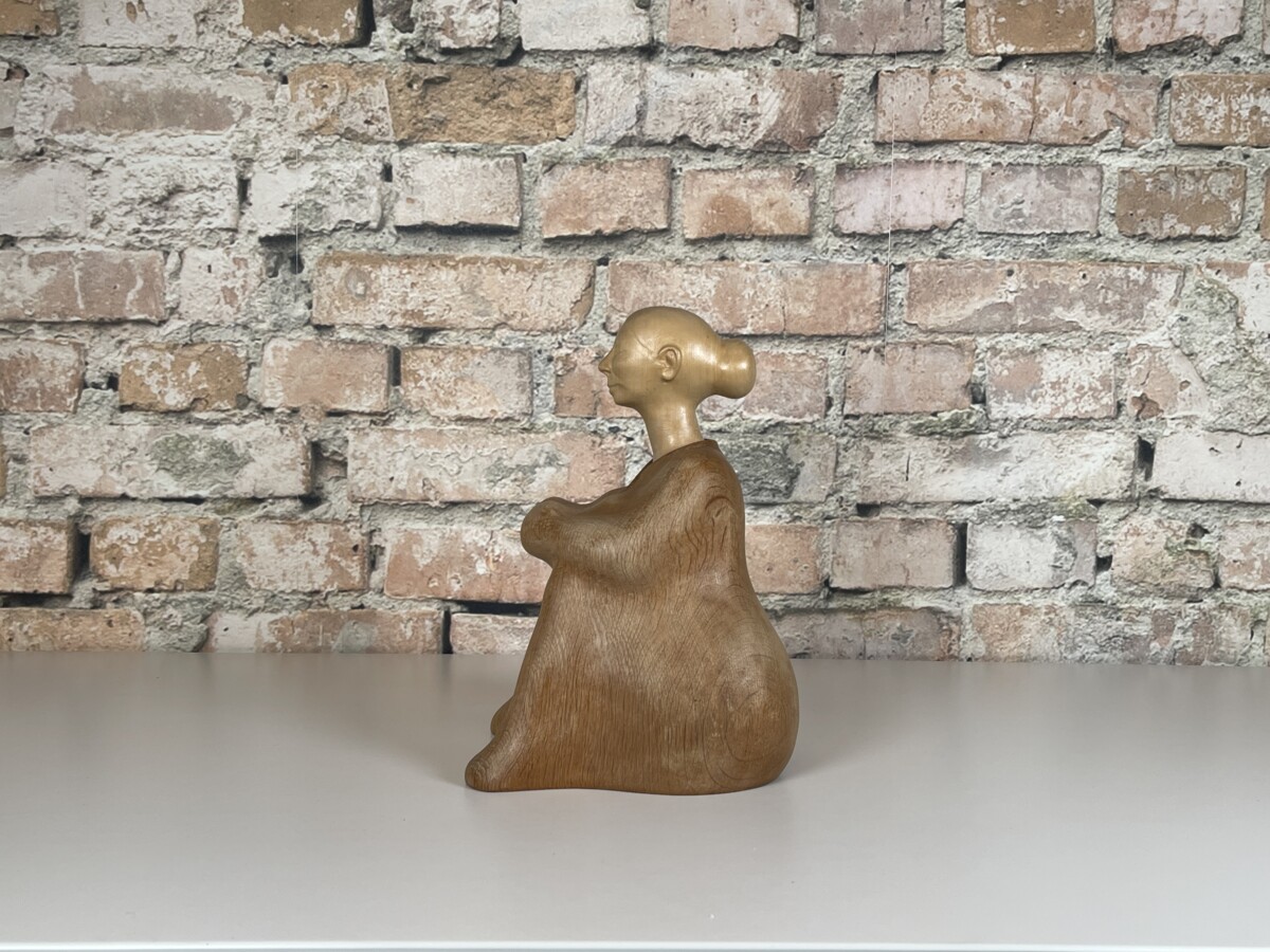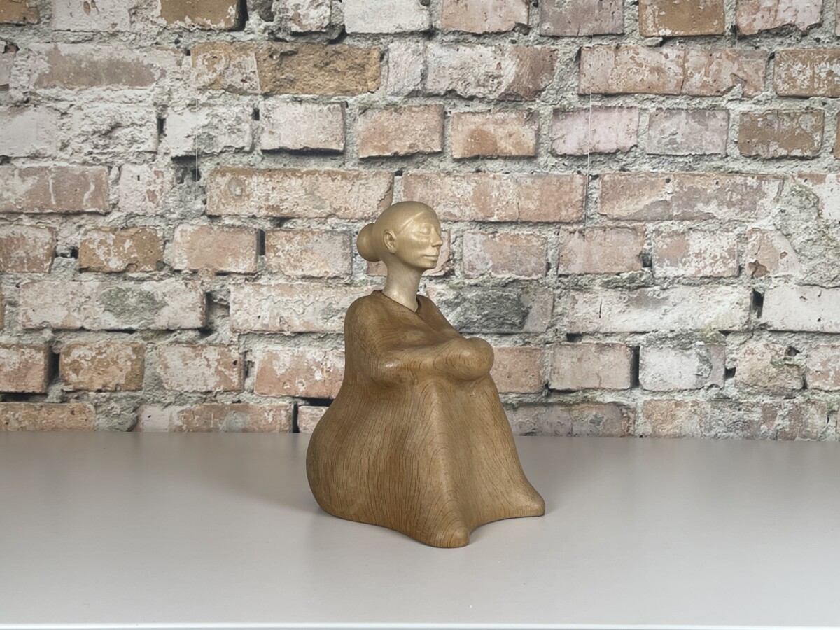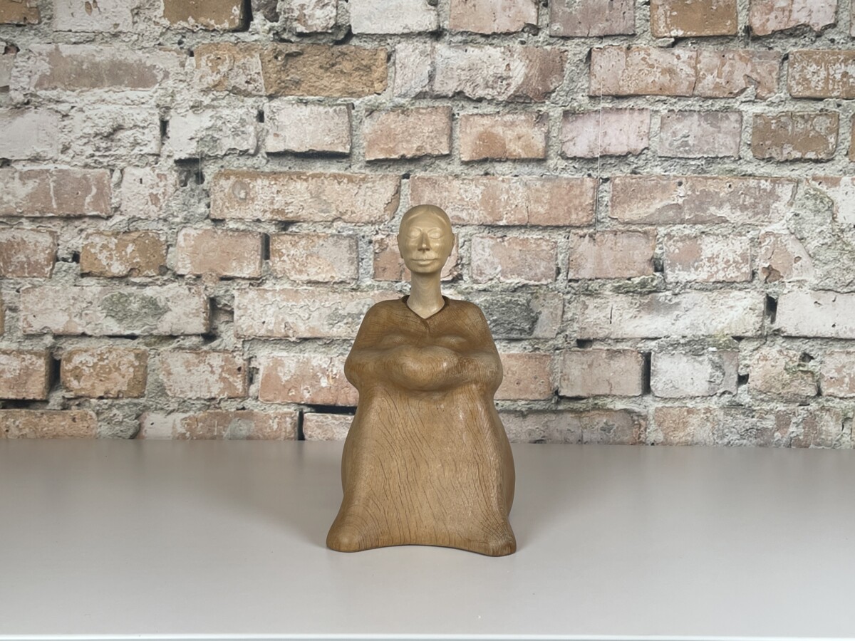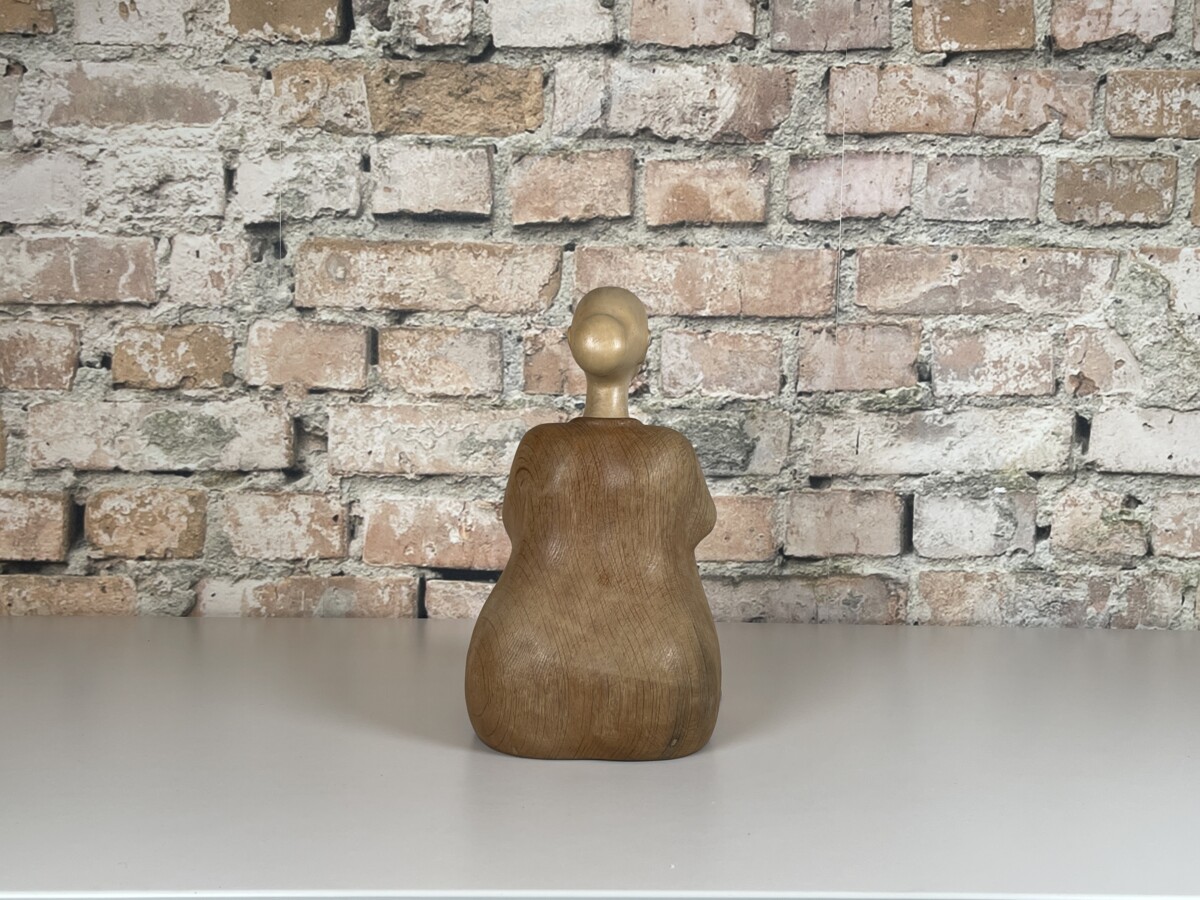 Met deze Houtsculptuur H.G. Obermaier Ruhende haal je een uniek en handgemaakt kunstwerk in huis. De sculptuur is vervaardigd door de kunstenaar H.G. Obermaier in het jaar 2003. Het werk stelt een rustende vrouw voor, zittend met de armen om de knieën, en straalt een grote sereniteit uit. Het object is een prachtig voorbeeld van hedendaagse houtsnijkunst.