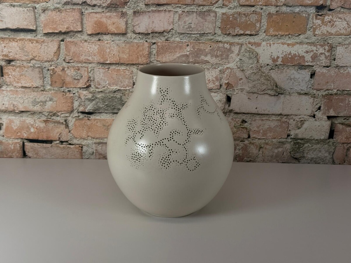 Kenmerkend voor de Hella Jongerius IKEA Vaas zijn de subtiele kleurnuances en de textuur die de vaas een uniek karakter geven. Het ontwerp is tijdloos en past perfect in een interieur waar design en kwaliteit centraal staan. Dit exemplaar verkeert in een uitstekende staat en vertoont geen beschadigingen of chips. Een prachtig object voor de kenner van Dutch Design die een iconisch stuk van Jongerius aan zijn of haar collectie wil toevoegen.