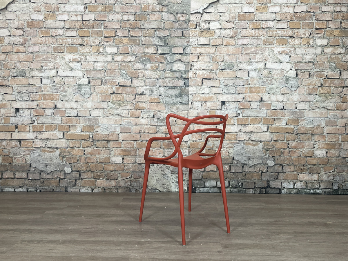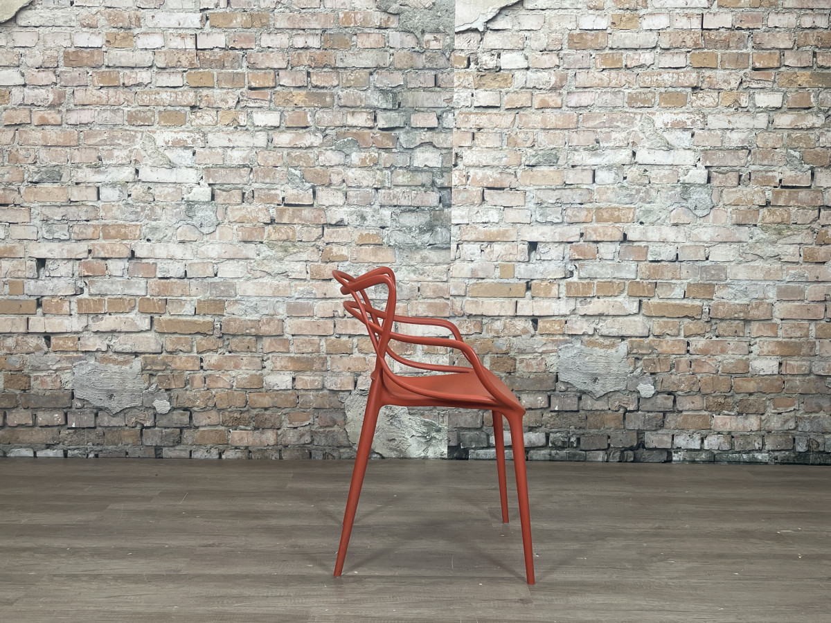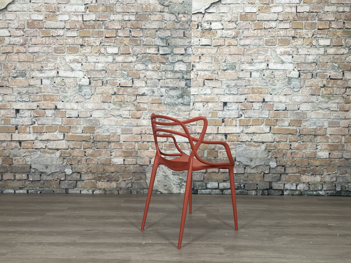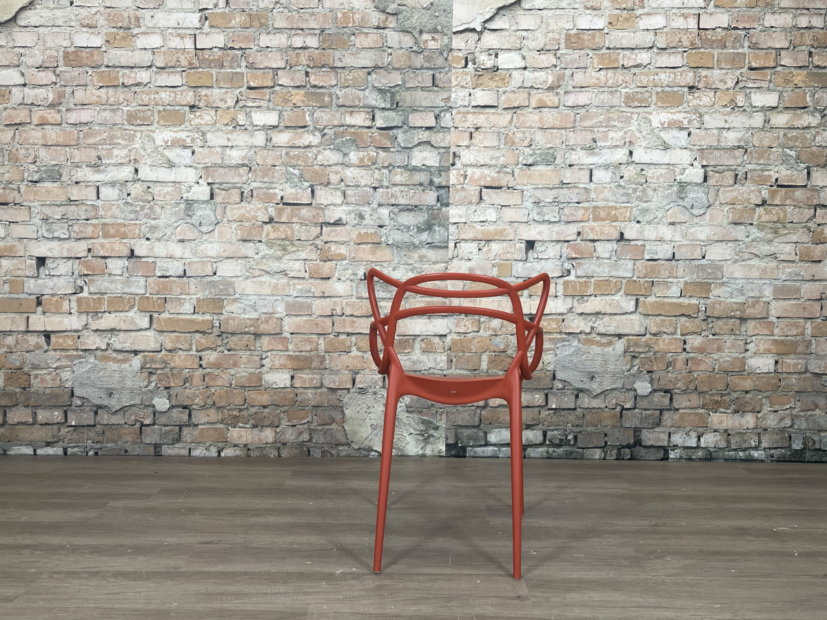 De Kartell Masters rood is een ontwerp van Philippe Starck en Eugeni Quitllet waarin de contouren van drie bekende designklassiekers samenkomen in een grafisch lijnenspel. De stoel is gemaakt van duurzaam kunststof, waardoor hij licht van gewicht, stapelbaar en geschikt is voor zowel binnen als buiten.