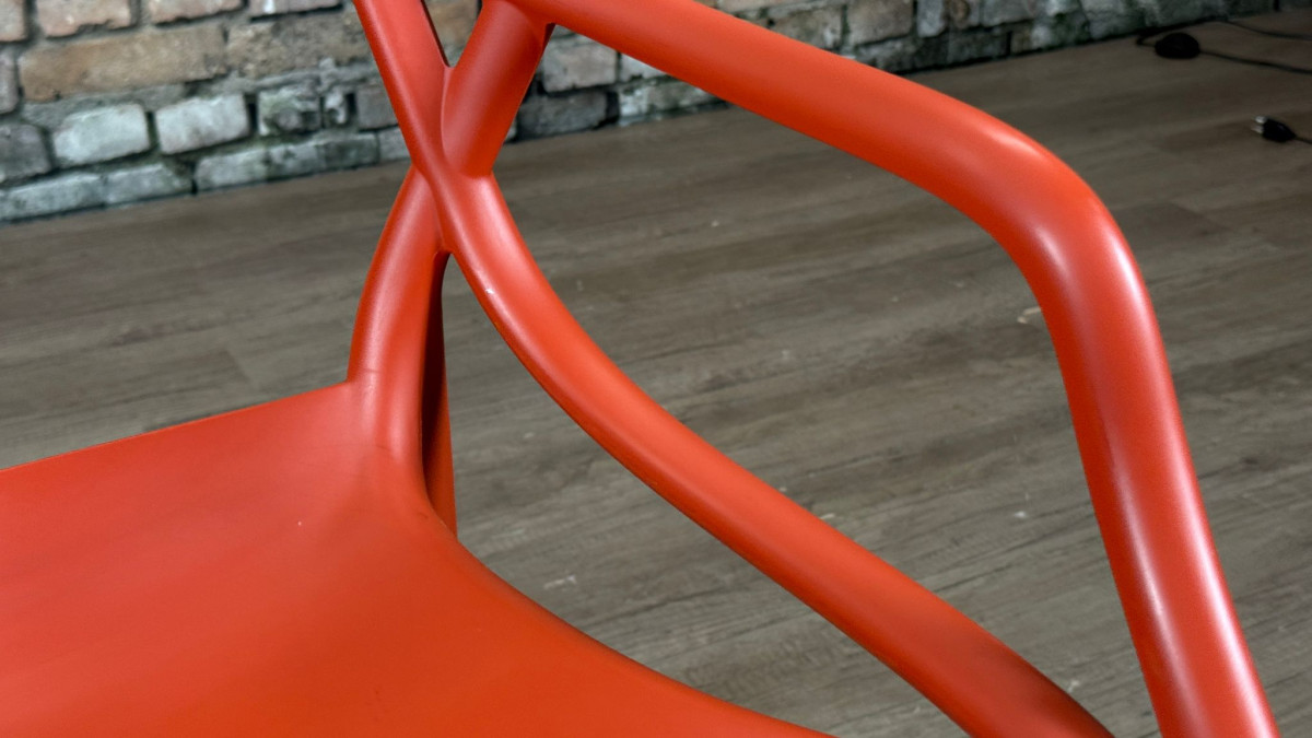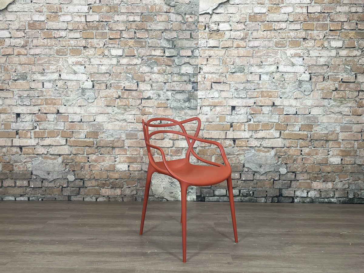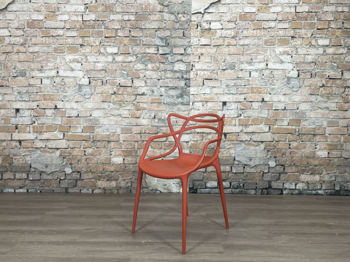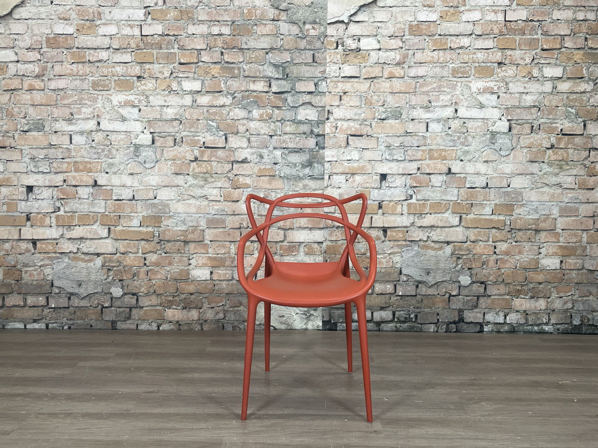 De Kartell Masters rood is een ontwerp van Philippe Starck en Eugeni Quitllet waarin de contouren van drie bekende designklassiekers samenkomen in een grafisch lijnenspel. De stoel is gemaakt van duurzaam kunststof, waardoor hij licht van gewicht, stapelbaar en geschikt is voor zowel binnen als buiten.
