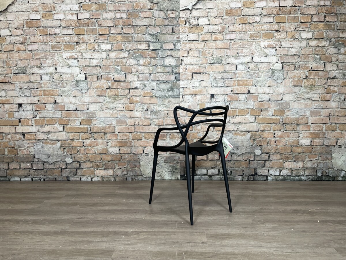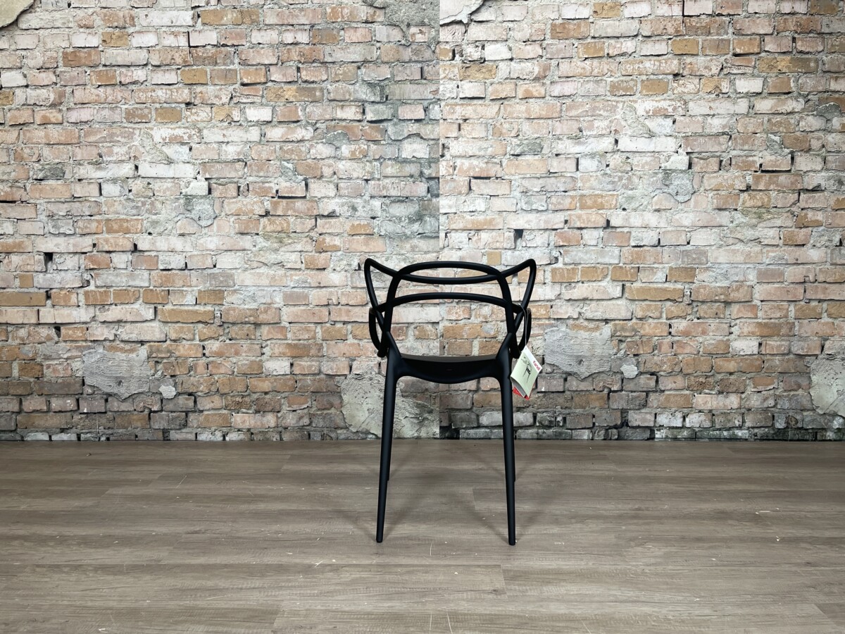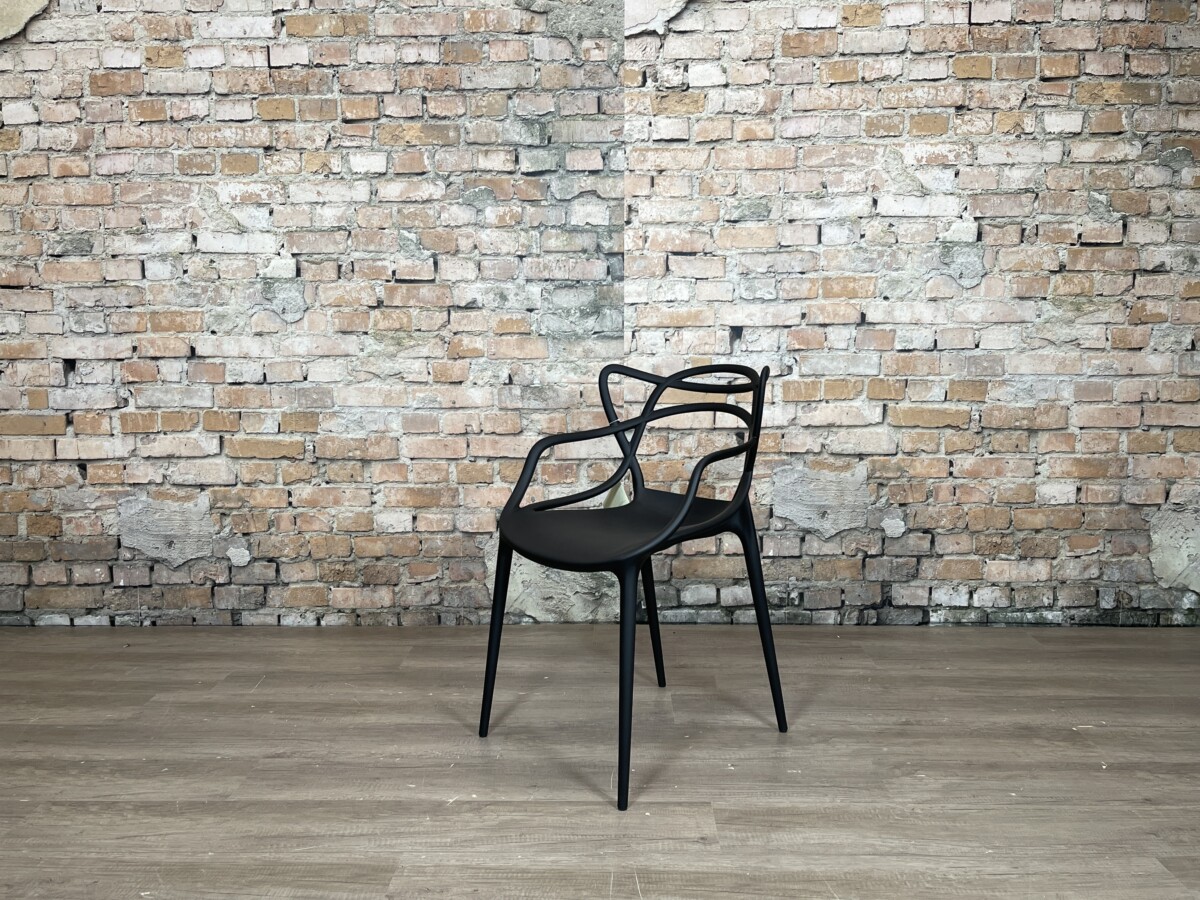 De Kartell Masters zwart is een ontwerp van Philippe Starck en Eugeni Quitllet waarin de contouren van drie bekende designklassiekers samenkomen in een grafisch lijnenspel. De stoel is gemaakt van duurzaam kunststof, waardoor hij licht van gewicht, stapelbaar en geschikt is voor zowel binnen als buiten.