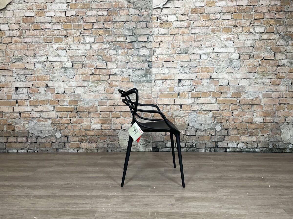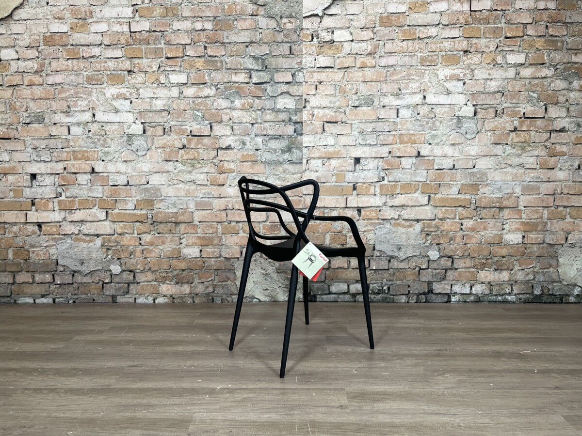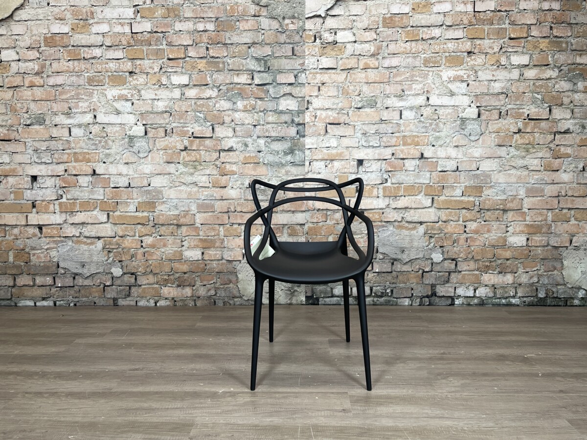 De Kartell Masters zwart is een ontwerp van Philippe Starck en Eugeni Quitllet waarin de contouren van drie bekende designklassiekers samenkomen in een grafisch lijnenspel. De stoel is gemaakt van duurzaam kunststof, waardoor hij licht van gewicht, stapelbaar en geschikt is voor zowel binnen als buiten.