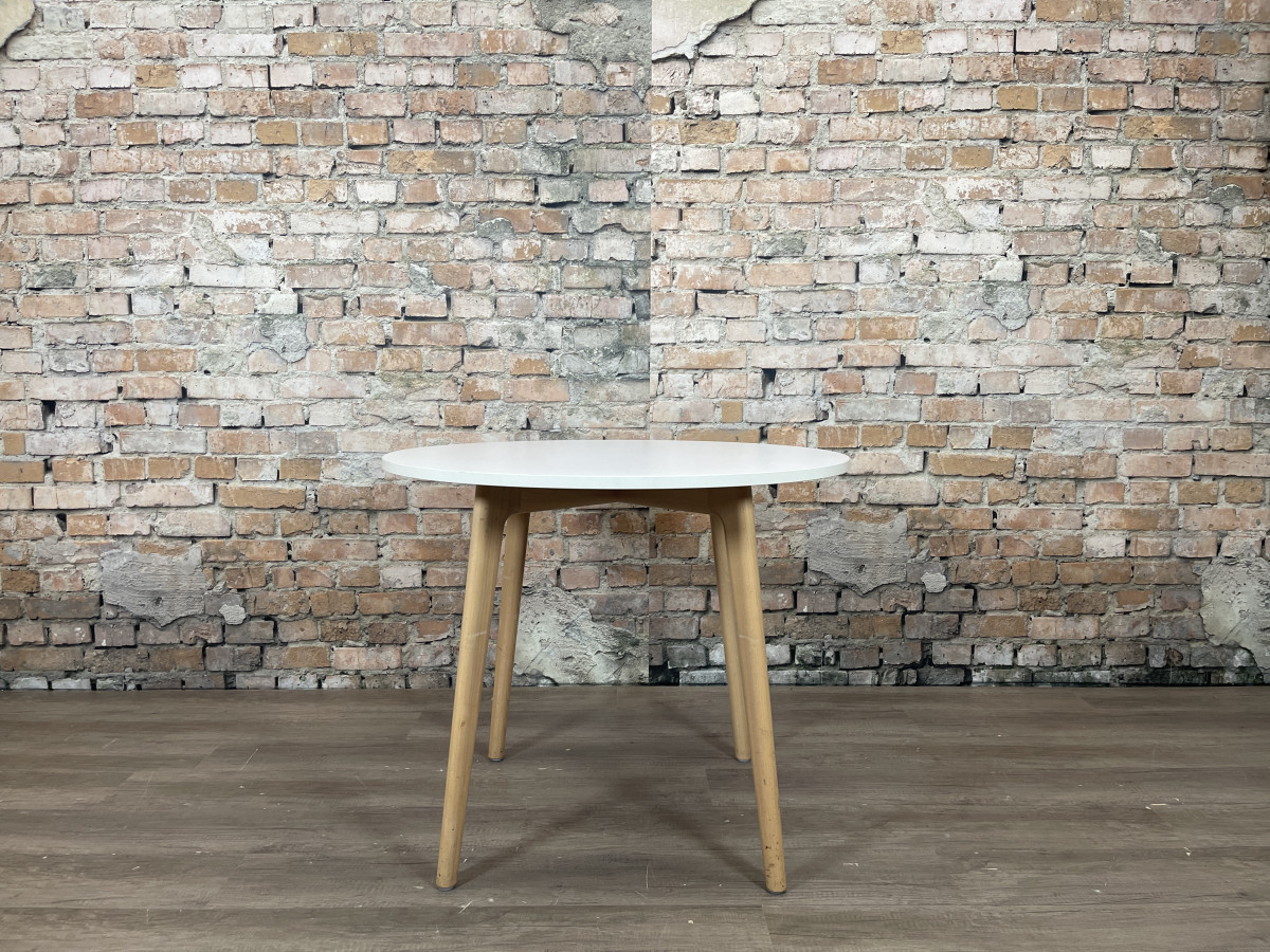 Strakke Kusch & Co tafel met wit blad en houten poten. Het eenvoudige ontwerp past in elke ruimte en combineert een frisse uitstraling met een natuurlijke look. Stevig, praktisch en stijlvol in gebruik.