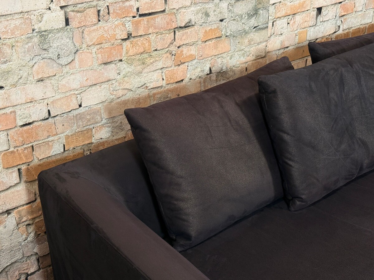 Het ontwerp van Marcel Wanders voor het merk Moooi herkent u direct aan de royale proporties en de verfijnde details, zoals de slanke metalen poten die de bank een moderne lift geven. De Moooi Canvas biedt dankzij de diepe zit en de losse rugkussens een heerlijk comfort voor een avond ontspannen. De bank verkeert in een uitstekende tweedehands staat; het zwart/antracietkleurige Alcantara is prachtig egaal en vrij van noemenswaardige gebruikssporen. Een buitenkans om een authentieke Moooi Canvas van Marcel Wanders te bemachtigen die luxe en praktisch gemak perfect combineert.