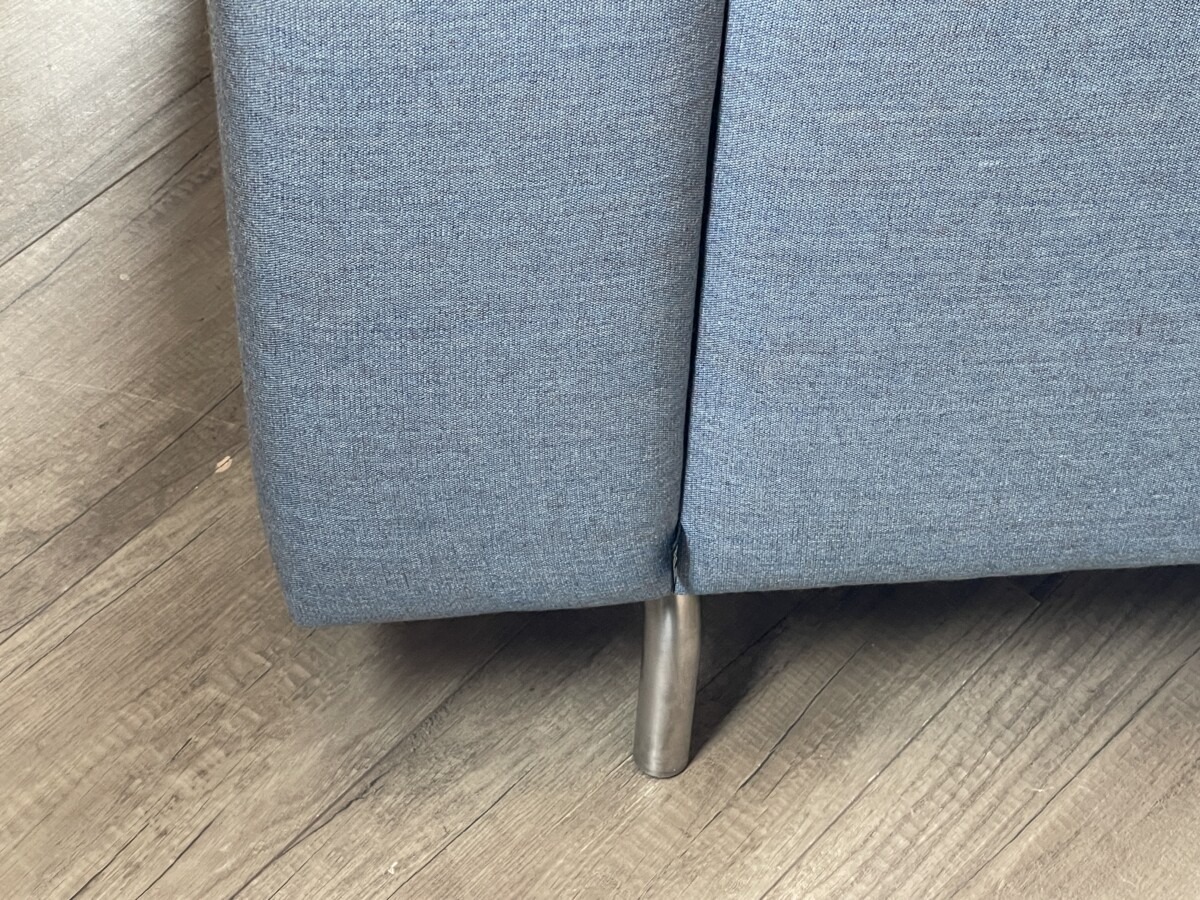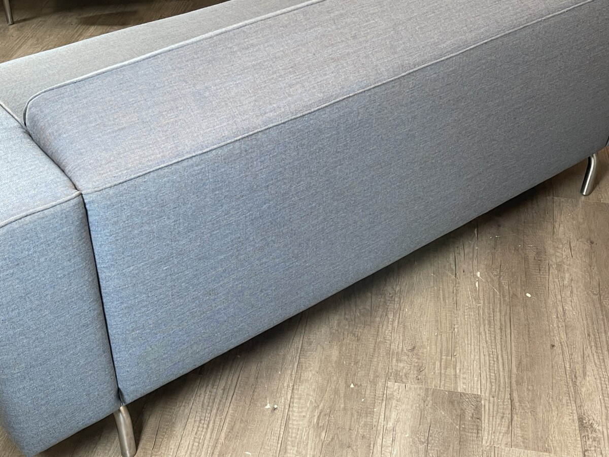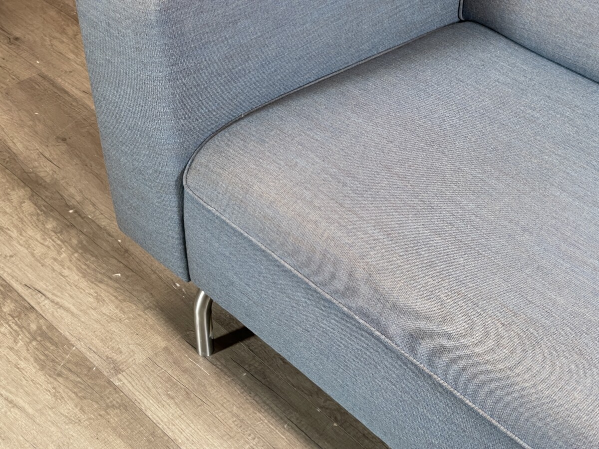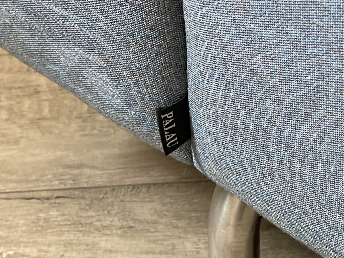 Mooie, moderne Palau bank met een tijdloos design. De strakke lijnen, brede armleuningen en metalen poten geven de bank een rustige en stijlvolle uitstraling. De Blauwe stof is neutraal en past makkelijk in verschillende interieurs.