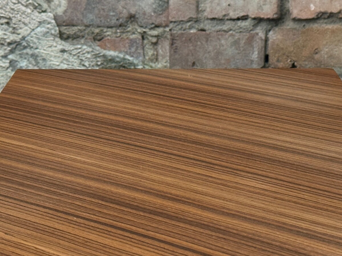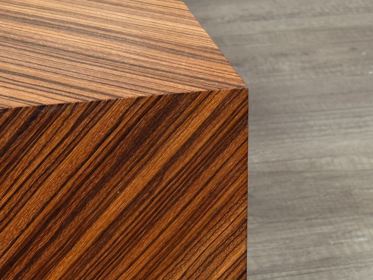 De Spectrum Joep Salontafel – Spectrum Design is een echt statement piece in elke moderne woonkamer. Door het gesloten kubusmodel oogt de tafel solide en rustig. De diagonalen in het fineer geven de tafel een dynamische en unieke uitstraling. Het meubel verkeert in een nette vintage staat met lichte gebruikssporen die passen bij de leeftijd. Een ideale keuze voor wie houdt van tijdloos, strak design met karakter.