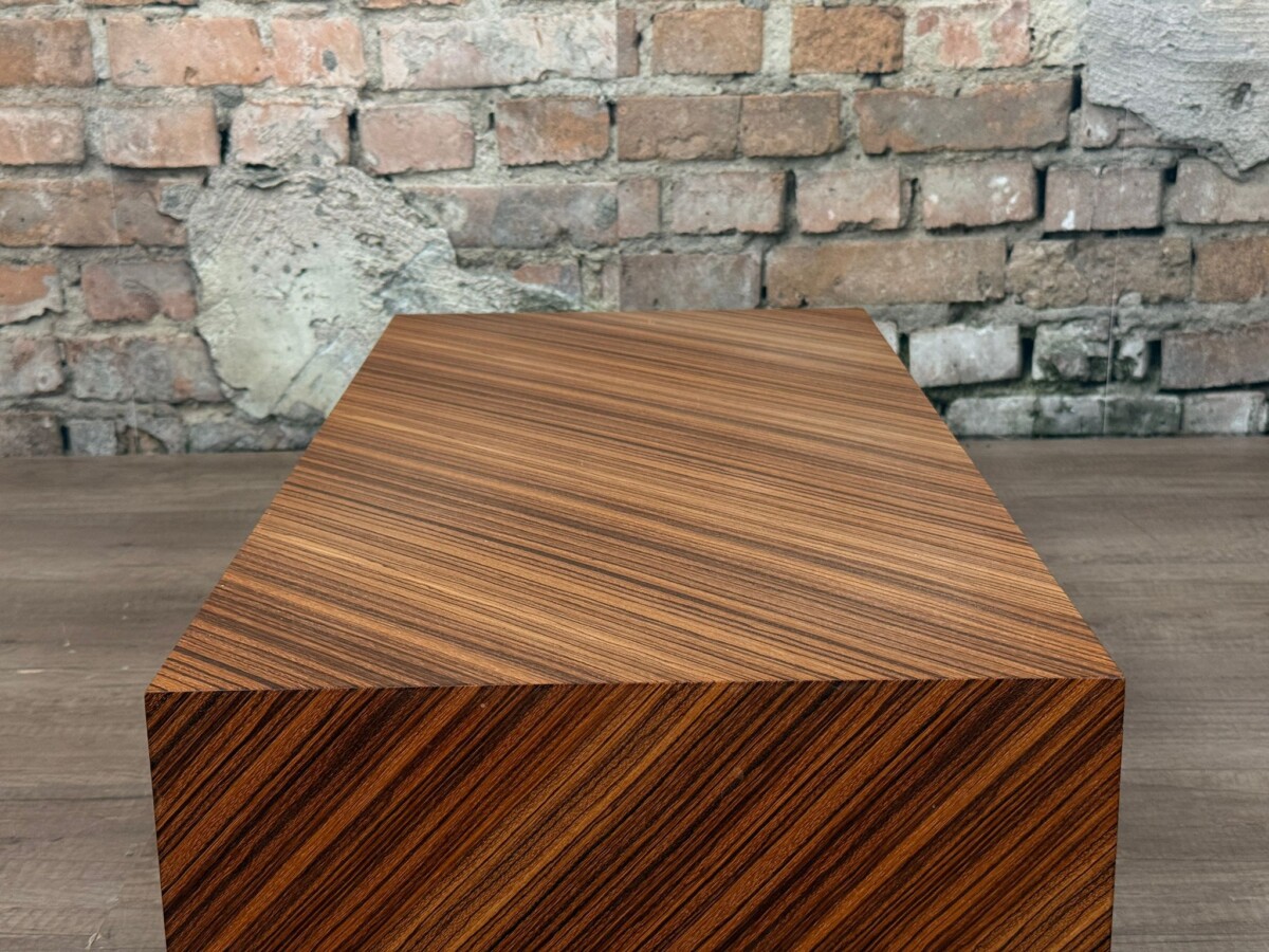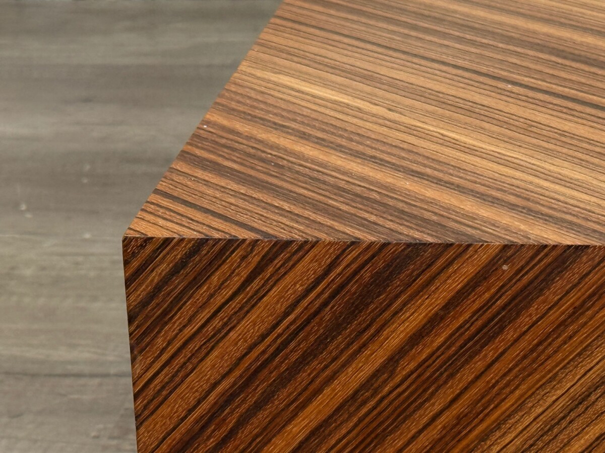 Met deze Spectrum Joep Salontafel – Spectrum Design haal je een prachtig stuk Nederlands design in huis. De salontafel is een ontwerp uit de Spectrum collectie en valt op door zijn strakke, minimalistische vormgeving. Dit specifieke exemplaar is bekleed met een opvallend en luxe fineer met een duidelijke diagonaal geplaatste nerf op het bovenblad en de zijkanten.