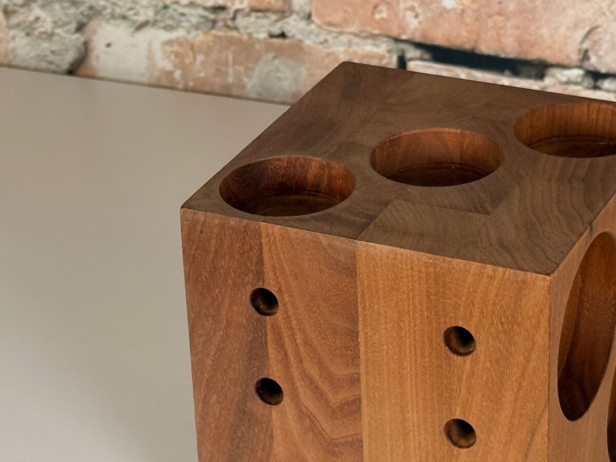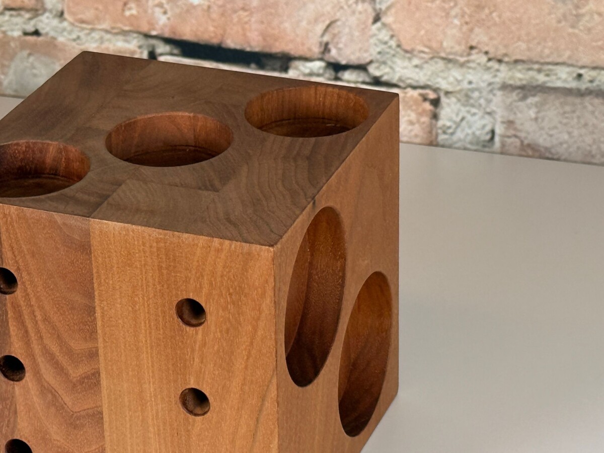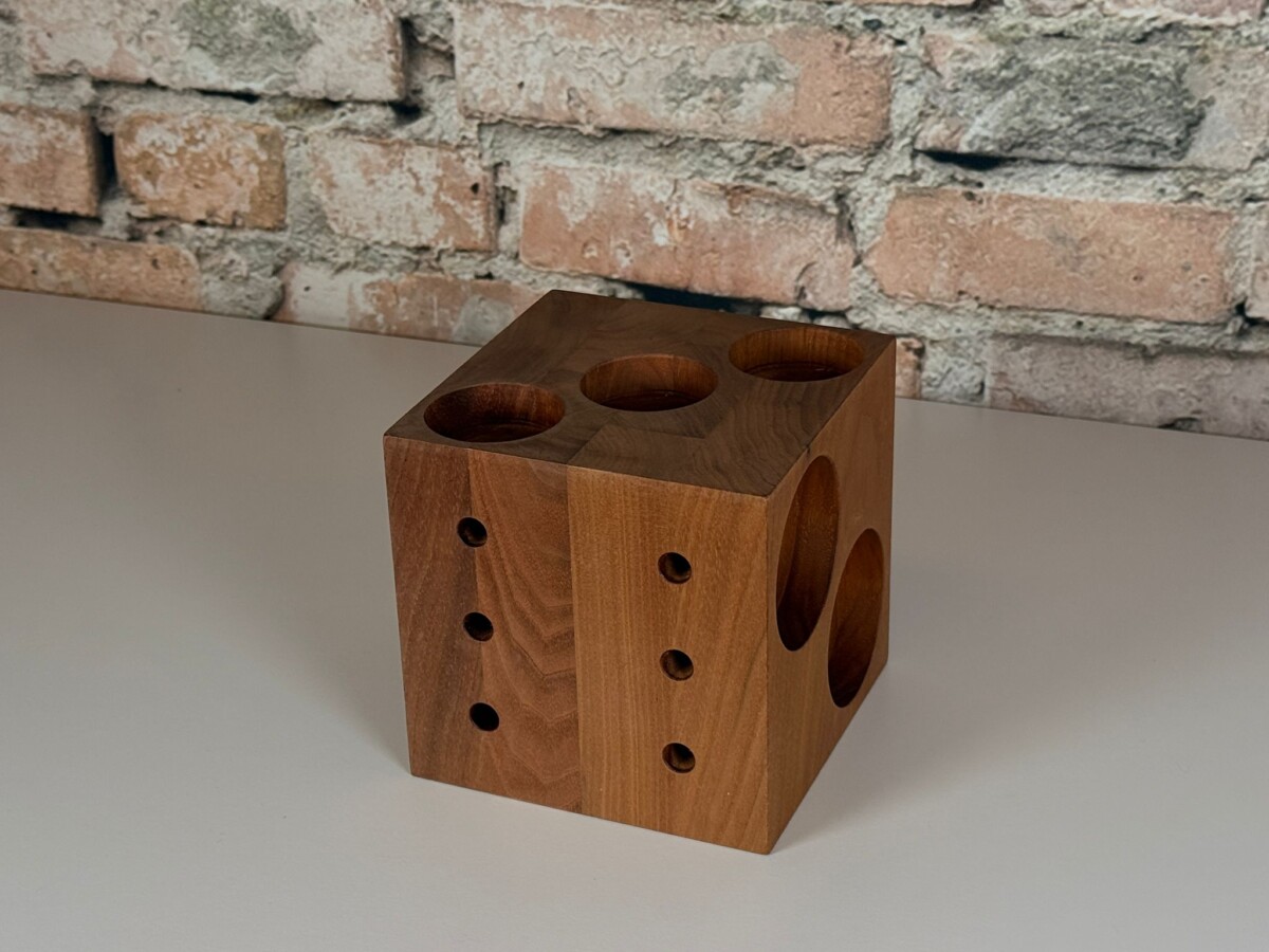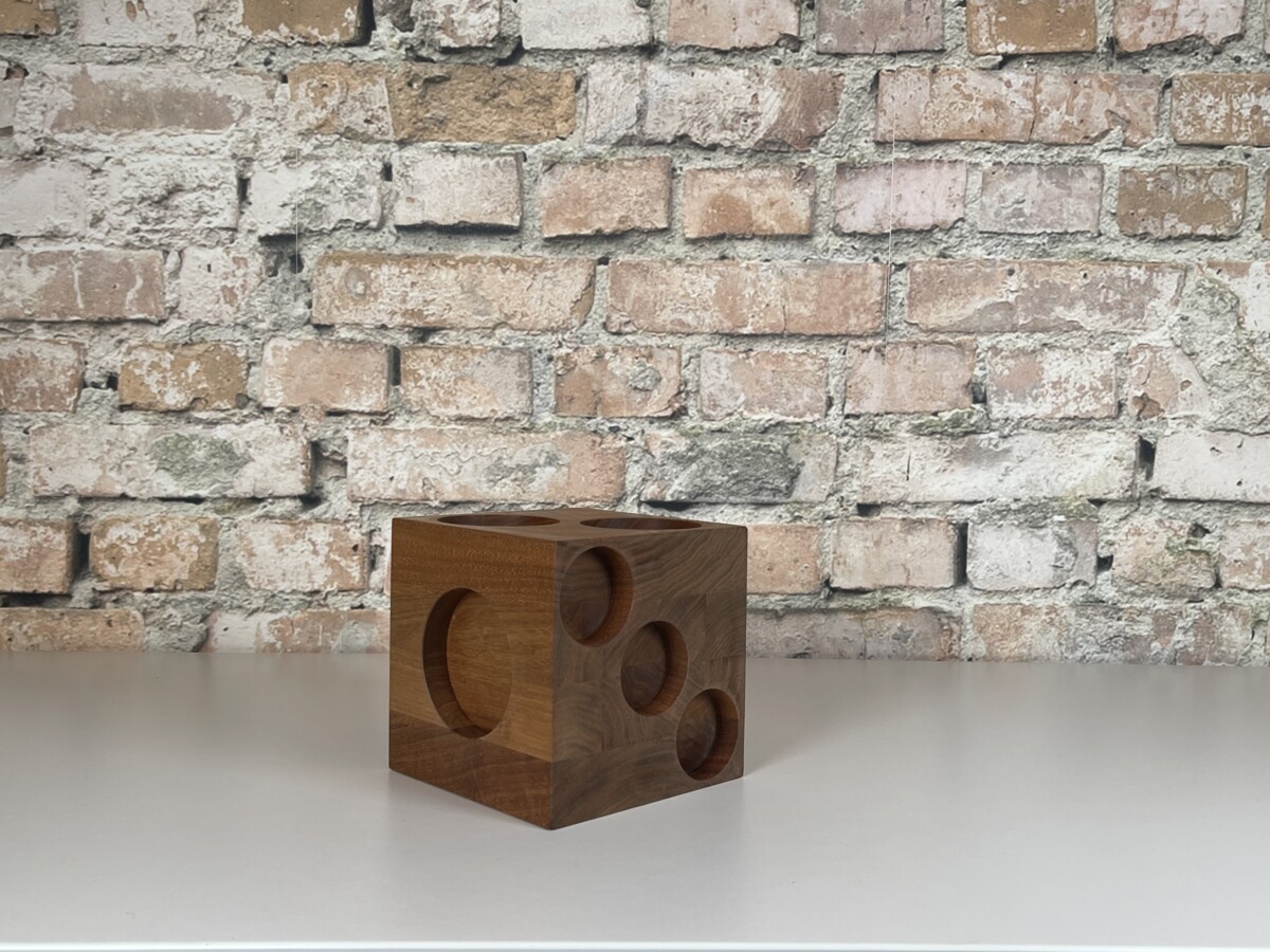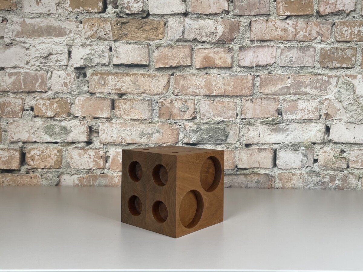 Deze Vintage Houten Dobbelsteen – Handgemaakt Accessoire is perfect te gebruiken als decoratie in een open kast, op een bureau of zelfs als boekensteun. Het combineert de nostalgie van oude spellen met modern, minimalistisch design. De dobbelsteen verkeert in een nette staat en het hout heeft een warme, natuurlijke kleur die in de loop der jaren alleen maar mooier is geworden.