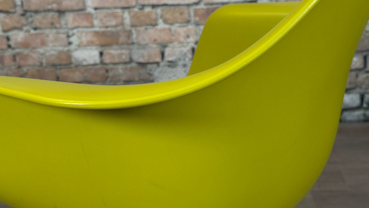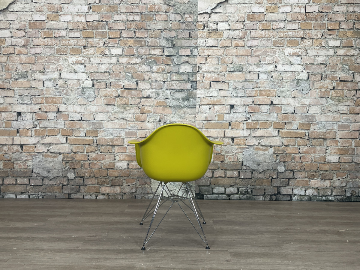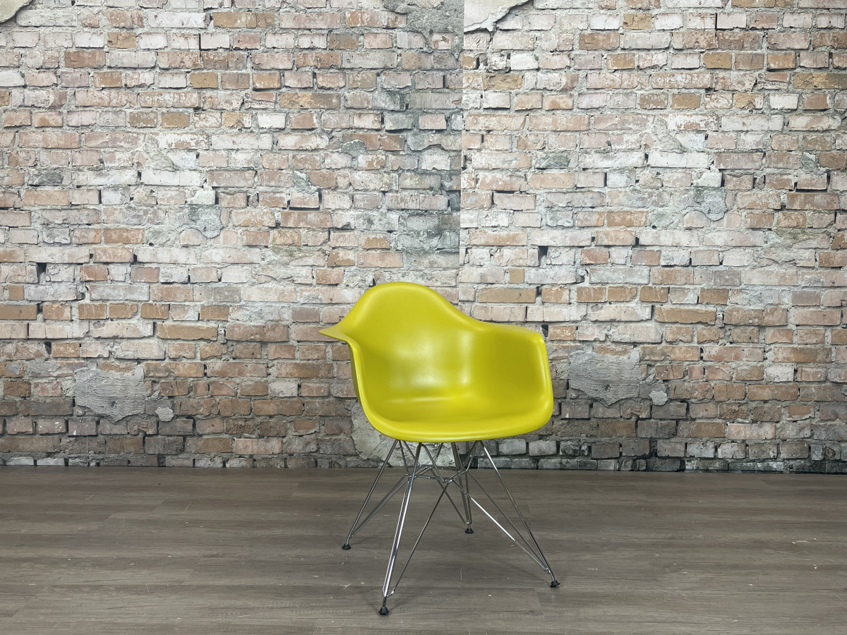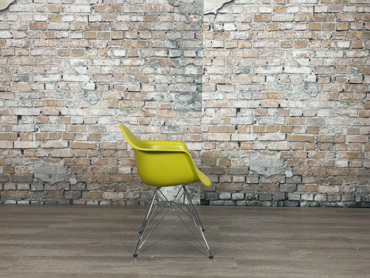 De DAR mustard is een ontwerp van Charles & Ray Eames voor het merk Vitra en combineert de bekende kunststof zitschaal met een verfijnd ‘Eiffeltoren-onderstel’ van staaldraad. Dankzij de geïntegreerde armleuningen biedt deze stoel extra steun en een omsloten zitcomfort aan de eettafel of werkplek.